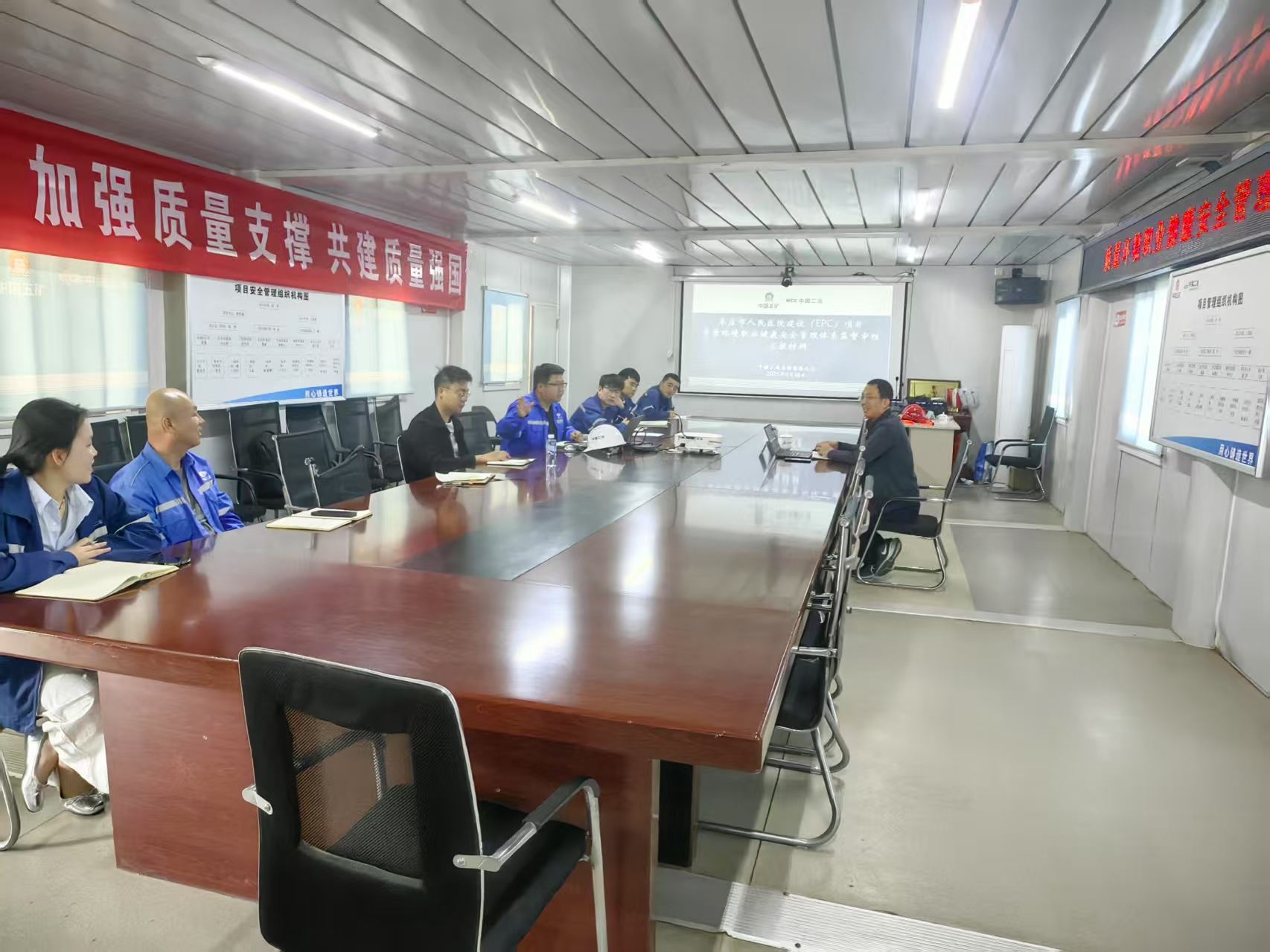 檢查過程中,專家組深入施工現(xiàn)場,重點核查了主體結(jié)構(gòu)施工、機電安裝及安全文明施工等環(huán)節(jié)。通過查閱施工日志、材料檢測報告及應(yīng)急預(yù)案等資料,結(jié)合現(xiàn)場隨機抽檢鋼筋綁扎精度、混凝土澆筑質(zhì)量等工藝,專家組對項目管理規(guī)范性進(jìn)行了細(xì)致評估。隨后召開的專題會議上,李興波聽取了項目經(jīng)理關(guān)于三體系運行情況的匯報,要求項目部在日常管理工作中更加注重風(fēng)險的識別、評估與防控,確保各項工作在可控范圍內(nèi)進(jìn)行。其次,加強管理意識,強調(diào)項目部在運行過程中要發(fā)揮EPC總承包優(yōu)勢,加強總承包方管理,優(yōu)化設(shè)計與施工協(xié)調(diào)流程。并就風(fēng)險防控、環(huán)保措施優(yōu)化等問題提出改進(jìn)建議。
