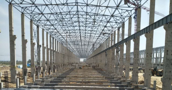 提到內(nèi)蒙古達拉特旗,人們會自然聯(lián)想到風(fēng)景優(yōu)美的庫布齊沙漠和響沙灣風(fēng)景區(qū),這里大漠浩瀚、瑰麗壯觀,是全國著名的沙漠旅游風(fēng)景區(qū)。但對于踏上這片沙漠的建設(shè)者來說,飛沙揚礫、綿延千里的沙漠只是他們征戰(zhàn)的沙場。2017年大年初六,大多數(shù)人們還沉浸在春節(jié)的團圓喜慶之中,而項目部的管理人員卻已經(jīng)在一片春寒料峭中,開啟了嶄新的征程。從辦公區(qū)到制作區(qū),從選址到場地建設(shè),項目部在極短的時間內(nèi)完成了前期準備工作。沙塵頻發(fā)且風(fēng)力較大,晝夜溫差極大,干燥少雨,冬寒夏熱,達拉特旗典型的沙漠氣候讓建設(shè)者們切切實實地領(lǐng)略了一把“大漠風(fēng)光”。由于甲方原因,該項目整體工期較其他單位相比,整體滯后了約五十天。項目部于六月初開始基礎(chǔ)施工,就面臨著工期緊張、場地狹小、交叉作業(yè)、自然條件惡劣等諸多困難,這著實考驗著項目部的戰(zhàn)斗力和鋼結(jié)構(gòu)公司的管理水平。轉(zhuǎn)變思路,調(diào)整定位,中國二冶將該項目列為重點監(jiān)管工程,從人員配置、對接溝通、技術(shù)方案、物料準備,方方面面都做足了功課,堅決不打無準備之仗。集團重視、部門支持、項目部發(fā)力,多方協(xié)調(diào)齊抓共管之下,項目部科學(xué)管理,合理安排工期,將人員進行分組,倒排工期,晝夜施工。頂著寒風(fēng),踏著積雪,迎著黃沙,從場地平整,到大臨建設(shè),從2017年6月5號基礎(chǔ)施工開始,到首榀予制柱吊裝成功,從500KA電解槽首臺樣槽落成,到8月5日屋頂主框架形成,建設(shè)者們斗嚴寒,戰(zhàn)酷暑,搶工期,抓進度,在短短的三個月時間內(nèi),完成了鋼結(jié)構(gòu)制作安裝近一萬噸的工作量,1#、2#煙氣凈化系統(tǒng)全部完成,電解槽基礎(chǔ)及短柱施工累計完成92臺。11月2日,一節(jié)長41米,重26噸的氧化鋁輸送通廊,由200噸履帶吊順利安裝到位,標志著氧化鋁車間關(guān)鍵的通廊節(jié)點順利完成。12月6日,2#電解車間92臺電解槽上部結(jié)構(gòu)制作任務(wù)全部完成。質(zhì)量好,進度快,這樣的“鋼結(jié)構(gòu)速度”贏得了多方的高度贊譽,并獲得了甲方的獎勵,為后續(xù)市場的開拓奠定了基礎(chǔ),為中國二冶贏得了良好的口碑,也標志著鋼結(jié)構(gòu)公司亮劍大型綜合類施工項目首戰(zhàn)告捷。