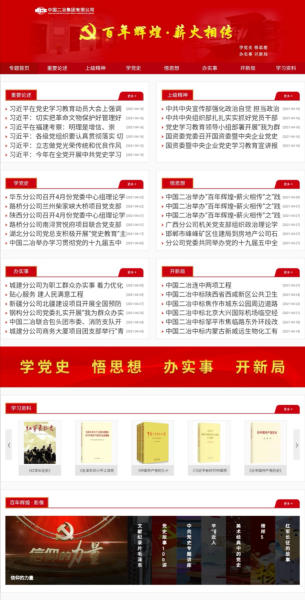 5月4日,公司黨群工作部特別策劃的“百年輝煌·薪火相傳”專題網(wǎng)頁正式上線,為深入學(xué)習(xí)宣傳貫徹習(xí)近平新時(shí)代中國特色社會(huì)主義思想,全面貫徹落實(shí)中國五礦、中冶集團(tuán)黨史學(xué)習(xí)教育動(dòng)員部署會(huì)相關(guān)要求,號(hào)召全體黨員干部學(xué)黨史、悟思想、辦實(shí)事、開新局,不斷增強(qiáng)抓好學(xué)習(xí)教育的思想自覺、政治自覺和行動(dòng)自覺,高標(biāo)準(zhǔn)高質(zhì)量完成學(xué)習(xí)教育各項(xiàng)任務(wù)增開了新渠道。專題網(wǎng)站下設(shè)9個(gè)欄目,分別是“重要論述”“上級(jí)精神”“學(xué)黨史”“悟思想”“辦實(shí)事”“開新局”“黨史書架”“百年輝煌·影像”“百年輝煌·百花齊放”欄目。專題網(wǎng)站旨在打造思想引領(lǐng)、政策解讀、信息傳遞、成果展示、經(jīng)驗(yàn)分享等為一體的黨史學(xué)習(xí)教育網(wǎng)上信息平臺(tái),引導(dǎo)公司廣大黨員干部將思想和行動(dòng)統(tǒng)一到中國二冶黨委部署上來,切實(shí)做到學(xué)史明理、學(xué)史增信、學(xué)史崇德、學(xué)史力行,一步一個(gè)腳印扎實(shí)推動(dòng)公司各項(xiàng)事業(yè)向前發(fā)展,以優(yōu)異成績迎接建黨100周年!