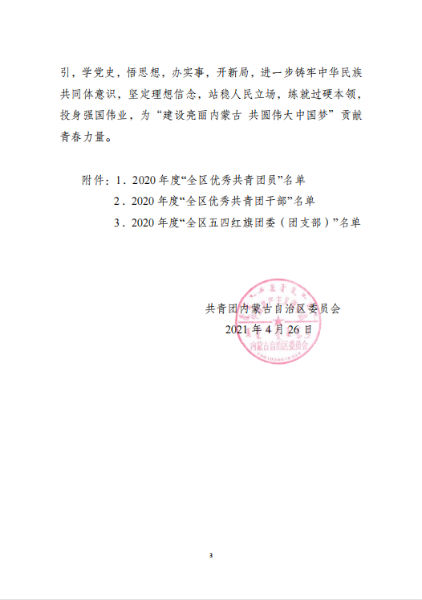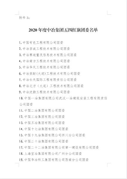 五四青年節(jié)前夕,共青團(tuán)內(nèi)蒙古自治區(qū)團(tuán)委、中冶集團(tuán)團(tuán)委分別發(fā)布表彰決定,授予中國二冶團(tuán)委“2020年度五四紅旗團(tuán)委”榮譽(yù)稱號(hào),同時(shí),公司團(tuán)委被共青團(tuán)包頭市委員會(huì)2020年工作考核等次評(píng)定為“實(shí)績突出”。