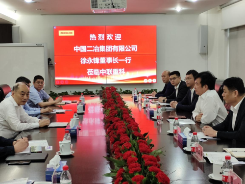 詹純新對徐永鋒董事長一行的到訪表示熱烈歡迎,并簡要介紹了中聯(lián)重科的發(fā)展歷史,以及中聯(lián)重科在工程機械、農業(yè)機械、新材料三大板塊的定位與布局。他表示,十分歡迎中國二冶參與到中聯(lián)重科智慧產(chǎn)業(yè)城的建設,同時希望與中國二冶以項目合作為基礎,在更多的領域實現(xiàn)全方位的深度合作。