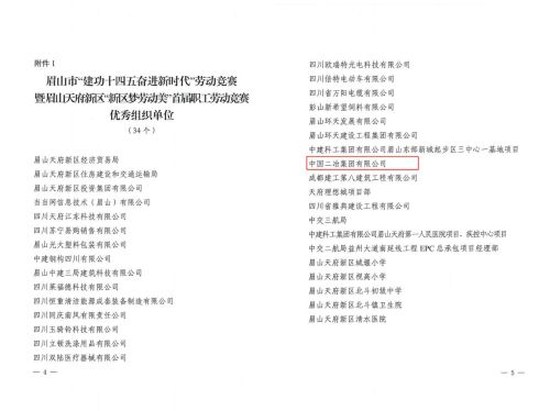 1月26日,四川省眉山市總工會發(fā)布關于眉山市“建功十四五奮進新時代”勞動競賽暨眉山天府新區(qū)“新區(qū)夢勞動美”首屆職工勞動競賽的表揚通報,對中國二冶集團、中國二冶梓州大道項目部在勞動競賽期間,積極響應眉山天府新區(qū)總工會的號召,認真組織開展施工生產任務,較好地完成施工生產總目標給予充分肯定,并給予表揚通報。