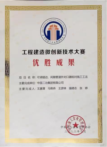 7月29日-30日,由中國(guó)施工企業(yè)管理協(xié)會(huì)主辦的2022年工程建設(shè)行業(yè)科技工作會(huì)議暨科技成果競(jìng)賽交流會(huì)在杭州召開。會(huì)上,由中國(guó)二冶選送的“可調(diào)錯(cuò)邊、間隙管道外對(duì)口器組對(duì)施工工法”榮獲第二屆工程建造微創(chuàng)新技術(shù)大賽優(yōu)勝成果獎(jiǎng);“大口徑長(zhǎng)輸管道大跨度整體吊裝施工方法”榮獲第二屆工程建設(shè)行業(yè)高推廣價(jià)值專利大賽三等獎(jiǎng)。