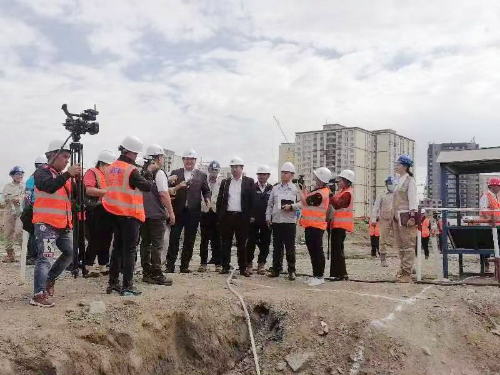 8月14日,蒙古國建筑與城市建設(shè)部部長孟和巴特爾一行到中華人民共和國援建、中國二冶承建的蒙古國棚戶區(qū)改造項(xiàng)目檢查指導(dǎo)工作并提出要求。