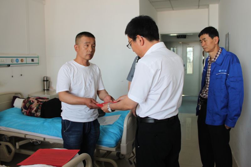 6月1日,路橋分公司黨委副書記與該公司設(shè)備物資租賃站黨政領(lǐng)導(dǎo)及相關(guān)部門負責(zé)人,將9730元愛心捐款送到設(shè)備物資租賃站困難職工董昌權(quán)手中。