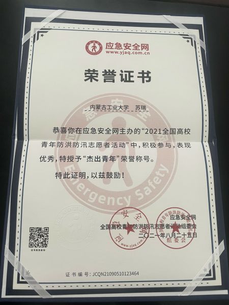 9月25日,一本記錄著路橋分公司青年員工蘇瑞愛(ài)心捐贈(zèng)的榮譽(yù)證書(shū)郵寄到大運(yùn)河項(xiàng)目部。蘇瑞向河南災(zāi)區(qū)奉獻(xiàn)愛(ài)心、捐款捐物的行動(dòng)得到了“應(yīng)急安全網(wǎng)”的褒揚(yáng),他也在“2021全國(guó)高校青年防洪防汛志愿者活動(dòng)”中被評(píng)為“杰出青年”榮譽(yù)稱號(hào)。