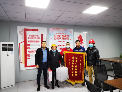 “感謝央企培養(yǎng)出這么好的員工!要不是你們拾金不昧、認真負責,那我們欄目損失可就大了!中國二冶好樣的,不愧是央企!這次失而復得,使我真切感受到中國二冶作為央企的責任擔當。”隨后,欄目組工作人員將一面印著“拾金不昧好榜樣,傳遞社會正能量”的錦旗送到項目負責人手中,并要給項目部一些酬謝,項目負責人婉言拒絕。