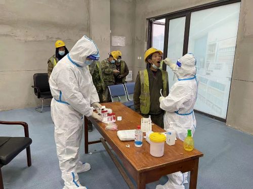 中冶德賢公館項目部作為路橋分公司唯一的在包項目,面對突如其來的疫情,逆行出戰(zhàn),與時間賽跑。項目經(jīng)理帶隊堅守一線,為確保項目建設(shè)有序進行,挑選符合條件的人員主動隔離入住項目部,派出“黨員先鋒隊”和“青年志愿者服務隊”,組織每日進場工人核酸檢測、健康碼查驗、區(qū)域內(nèi)全方位消殺,培訓后協(xié)助醫(yī)護人員行核酸采樣,輔助一線工作者核酸檢測。