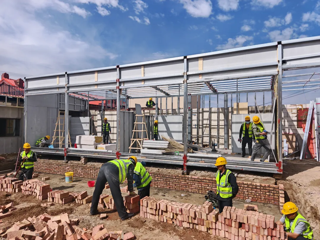 自接到包頭市政府下達(dá)的攻堅(jiān)任務(wù)后,中國(guó)二冶冶金分公司聞令而動(dòng),立即成立專(zhuān)項(xiàng)指揮部,統(tǒng)籌調(diào)配全優(yōu)勢(shì)資源。面對(duì)設(shè)計(jì)圖紙動(dòng)態(tài)調(diào)整、多專(zhuān)業(yè)交叉施工且施工工期只有短短的45天等挑戰(zhàn),項(xiàng)目管理團(tuán)隊(duì)提前組織施工人員進(jìn)行安全培訓(xùn),并預(yù)留大部分人員備戰(zhàn),保證所有工種能及時(shí)施工、全面鋪開(kāi);項(xiàng)目部和設(shè)計(jì)師提前對(duì)接,針對(duì)外觀效果圖及時(shí)確認(rèn)相關(guān)材料,提前備貨,通過(guò)動(dòng)態(tài)設(shè)計(jì)、動(dòng)態(tài)施工,項(xiàng)目領(lǐng)導(dǎo)班子堅(jiān)持二十四小時(shí)現(xiàn)場(chǎng)帶班指揮,施工團(tuán)隊(duì)采取三班倒連續(xù)作業(yè)的模式,形成立體化交叉施工態(tài)勢(shì),確保各工序“零縫隙”推進(jìn)。在項(xiàng)目部全體員工的共同努力下,目前項(xiàng)目所有土建基礎(chǔ)工程已近完成。
