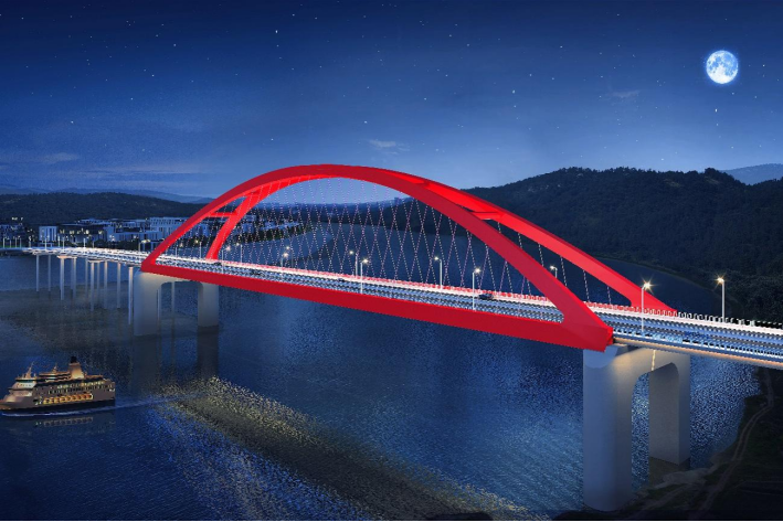 該工程路線全長4.447千米,新建路段長2.167千米,共設(shè)置橋梁2座,分離式立交1處,主要建設(shè)內(nèi)容包括道路工程、橋梁工程、交安工程及相關(guān)附屬配套設(shè)施。其中,馬躍巖大橋是橫跨涪江、連接南壩北壩的特大橋梁,橋梁全長701米,下部結(jié)構(gòu)設(shè)計(jì)為樁基礎(chǔ)共76根,最大樁徑2米,最大樁長24米。