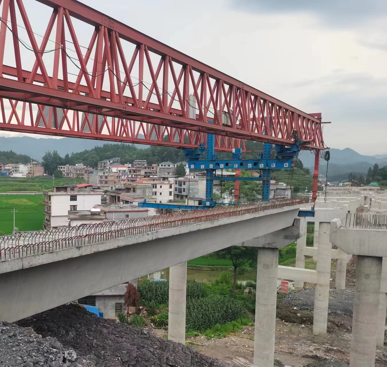 為確保桂花屋場(chǎng)首片箱梁順利架設(shè),項(xiàng)目部提前策劃、精心組織,召開(kāi)箱梁架設(shè)首件專(zhuān)題會(huì),研究制定架梁方案,并在架梁前對(duì)支座、墊石等關(guān)節(jié)要素進(jìn)行標(biāo)準(zhǔn)化審核驗(yàn)收,對(duì)架設(shè)工人進(jìn)行交底和培訓(xùn)。歷時(shí)三天,架橋機(jī)安裝完畢,桂花屋場(chǎng)大橋首片箱梁順利架設(shè)。