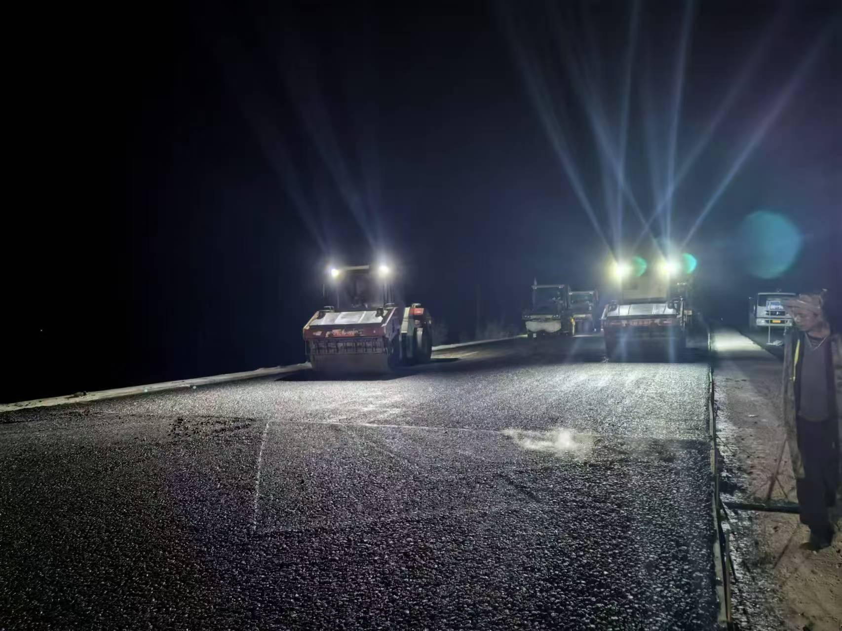 此次主線(xiàn)瀝青下面層的順利貫通,?是項(xiàng)目建設(shè)過(guò)程中的一個(gè)重要節(jié)點(diǎn)。?自項(xiàng)目啟動(dòng)以來(lái),?建設(shè)團(tuán)隊(duì)克服天氣多變、地質(zhì)條件復(fù)雜、?施工難度大等重重困難,?精心組織、?科學(xué)施工,金秋多雨,項(xiàng)目組織利用雨停間隙拼搶工期,?確保了工程質(zhì)量和進(jìn)度的雙重推進(jìn),?特別是在路面施工過(guò)程中,一線(xiàn)作業(yè)人員嚴(yán)格按照設(shè)計(jì)標(biāo)準(zhǔn)和施工規(guī)范,?采用先進(jìn)的攤鋪設(shè)備和施工工藝,?確保了瀝青下面層的平整度、?密實(shí)度和耐久性,?為后續(xù)上面層的攤鋪及整體路面質(zhì)量的提升打下基礎(chǔ)。??