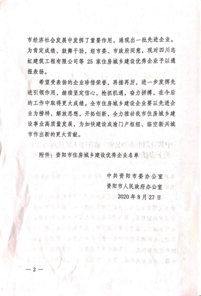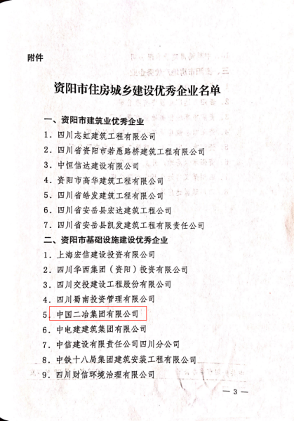 8月28日上午,四川省資陽(yáng)市委組織召開(kāi)資陽(yáng)市城鄉(xiāng)建設(shè)工作會(huì)議,中國(guó)二冶被授予“資陽(yáng)市基礎(chǔ)設(shè)施建設(shè)優(yōu)秀企業(yè)”稱號(hào)。