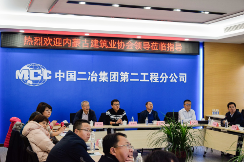 12月6日下午,內(nèi)蒙古自治區(qū)建筑業(yè)協(xié)會組織副會長單位代表一行到中國二冶第二工程分公司參觀交流。中國二冶總工程師、副總經(jīng)理武軼彬與對方進(jìn)行友好會談,雙方就推動內(nèi)蒙古自治區(qū)建筑企業(yè)高速發(fā)展進(jìn)行溝通交流、廣泛交換意見。