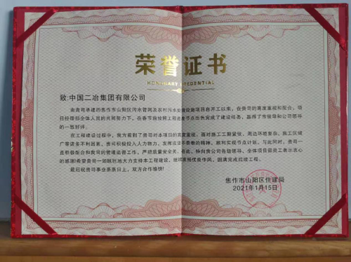 1月25日,中原分公司焦作市山陽區(qū)污水管網(wǎng)及農(nóng)村污水處理工程建設(shè)項(xiàng)目連續(xù)收到焦作市山陽區(qū)住房和城鄉(xiāng)建設(shè)局和焦作山陽投資有限公司發(fā)來的表揚(yáng)信,對(duì)項(xiàng)目施工進(jìn)度、安全質(zhì)量管理等方面進(jìn)行表揚(yáng),并號(hào)召焦作各參建單位對(duì)標(biāo)先進(jìn),向該項(xiàng)目部學(xué)習(xí)。