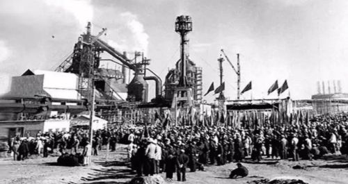從百里之外的白云鄂博礦山到波濤滾滾的黃河水源地,從雜懷溝到卡布其礦區(qū),從昆都侖河以西的工業(yè)廠區(qū)到十里草原鋼城,到處都展現(xiàn)出如火如荼的施工場(chǎng)面,到處都留下冶金建設(shè)者艱苦拼搏的腳印。一座座高爐廠房拔地而起、一個(gè)個(gè)煙囪高聳入云、一片片居民住宅日新月異,建設(shè)者們戰(zhàn)嚴(yán)寒,斗酷暑,團(tuán)結(jié)協(xié)作,日夜奮戰(zhàn),一個(gè)目標(biāo)就是要盡快地建設(shè)起包鋼。