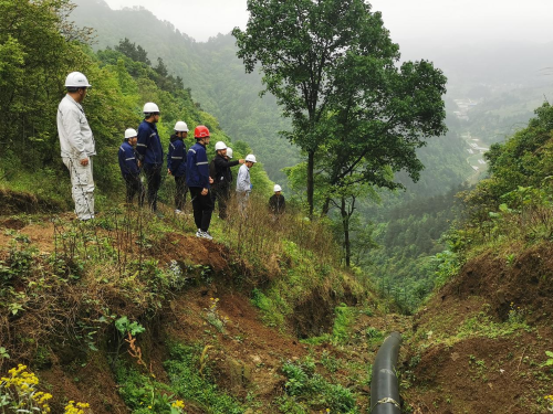 在辦實(shí)事、開新局環(huán)節(jié),全體參建人員在《踐行遵義會(huì)議精神 建設(shè)人民滿意工程》的條幅上簽名,承諾以實(shí)事求是、民主團(tuán)結(jié)的遵義會(huì)議精神為引領(lǐng),充分發(fā)揚(yáng)‘一天也不耽誤,一天也不懈怠’ 的企業(yè)精神,以高度的責(zé)任感和使命感踐行央企責(zé)任擔(dān)當(dāng),履行光榮使命。中國二冶技術(shù)人員帶領(lǐng)甲方業(yè)主、媒體朋友參觀縣縣通天然氣管道建設(shè)項(xiàng)目在建分部。該項(xiàng)目總長(zhǎng)為187.25公里,項(xiàng)目建設(shè)內(nèi)容包括臺(tái)盤至劍河天然氣管道;鎮(zhèn)遠(yuǎn)至羊滿哨天然氣管道;羊滿哨至天柱天然氣管道;凱里至黃平天然氣管道 ;凱里至雷山天然氣管道。同時(shí)還包括施秉輸氣站、鎮(zhèn)遠(yuǎn)輸氣站、羊滿哨輸氣站、天柱輸氣站等9座輸氣站和爐山閥室、瓦寨閥室、桐林閥室、款場(chǎng)閥室、西江閥室等5座閥室及所需附屬設(shè)施。該項(xiàng)目負(fù)責(zé)人馬艷偉介紹到:“該項(xiàng)目途經(jīng)貴州省多個(gè)縣及古城,地勢(shì)險(xiǎn)峻,多為森林和陡坡,管道敷設(shè)要在懸崖和峭壁上開展,中國二冶建設(shè)者們以‘遵義會(huì)議精神’為引領(lǐng),攻克一個(gè)個(gè)難關(guān),使項(xiàng)目建設(shè)取得了突破性進(jìn)展,長(zhǎng)輸管道的安裝成功,切實(shí)優(yōu)化了貴州省能源供給,為促進(jìn)地方經(jīng)濟(jì)社會(huì)發(fā)展起到了強(qiáng)有力的推動(dòng)作用。”