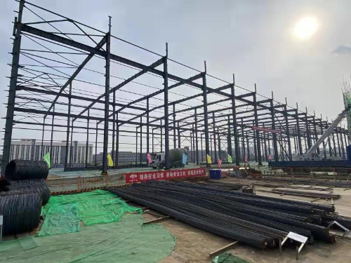 在全長171.6米,寬59.6米的1#車間施工現(xiàn)場,獨立基礎+輕鋼結構是本工程開局的重頭戲。項目部針對基底設計標高-4.000米,基底換填深度達-5.600米,時間緊任務重,質量要求高,施工難度大等不利因素和嚴峻挑戰(zhàn),迅速組織技術人員進行技術攻關,制定詳盡的技術方案,在做足做細保溫防寒準備工作后,項目部克服草原鋼城春寒料峭的惡劣環(huán)境,掀起“黨旗飄揚、黨徽閃光”行動暨“奮戰(zhàn)120天,獻禮建黨百年華誕”勞動競賽,大干20天,順利完成1#車間混凝土基礎短柱澆筑,工程取得重大突破。3月15日,第一批鋼結構構件運抵施工現(xiàn)場,鋼結構安裝正式啟動,首根16米高鋼柱一次吊裝成功,帶有MCC“中國二冶”標識的彩旗在鋼柱頂端迎風飄揚,項目部全體職工歡呼雀躍,久違的笑容、堅定的信心在施工現(xiàn)場歡騰蕩漾。在“五一”這個禮贊勞動、致敬勞動者的日子里,項目部全體職工弘揚勞動精神、勞模精神,堅守一線,拼搏奮斗,勇攀高峰,捷報頻傳,1#車間鋼結構安裝完成,吊車梁安裝完成,具備彩板安裝條件,施工速度一次又一次刷新,讓筆者看到了新時代勞動者最美的風采。