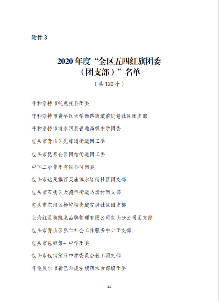 五四青年節(jié)前夕,共青團(tuán)內(nèi)蒙古自治區(qū)團(tuán)委、中冶集團(tuán)團(tuán)委分別發(fā)布表彰決定,授予中國二冶團(tuán)委“2020年度五四紅旗團(tuán)委”榮譽(yù)稱號(hào),同時(shí),公司團(tuán)委被共青團(tuán)包頭市委員會(huì)2020年工作考核等次評(píng)定為“實(shí)績突出”。