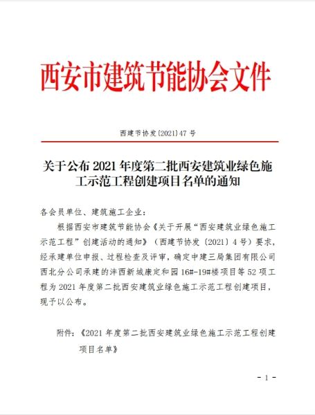 12月30日,由中國二冶承建的中譽(yù)華庭項(xiàng)目榮獲“2021年度第二批西安建筑業(yè)綠色施工示范工程”稱號。