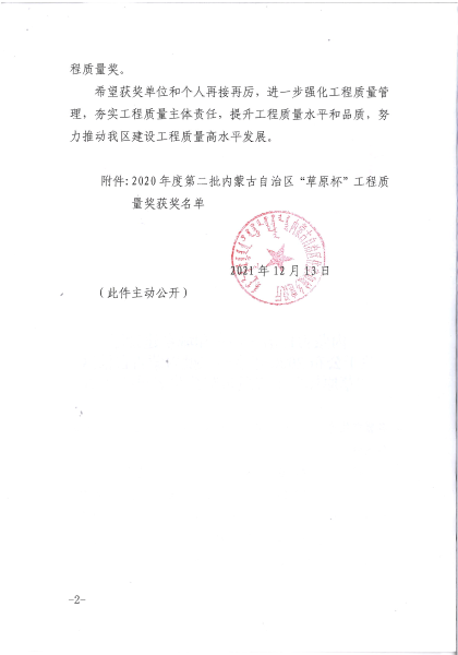 近日,內(nèi)蒙古自治區(qū)住房和城鄉(xiāng)建設(shè)廳官網(wǎng)公示2020年度內(nèi)蒙古自治區(qū)“草原杯”工程質(zhì)量獎(jiǎng)名單,中國二冶內(nèi)蒙古分公司承建的內(nèi)蒙古自治區(qū)綜合疾病預(yù)防與控制中心項(xiàng)目、呼市呼倫路跨小黑河橋同時(shí)榮獲2020年度第二批內(nèi)蒙古自治區(qū)“草原杯”工程質(zhì)量獎(jiǎng)。