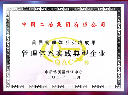 近日,中國二冶在中質協(xié)質量保證中心舉辦的首屆管理體系實踐成果評選活動中,榮獲“管理體系實踐典型企業(yè)”榮譽稱號。