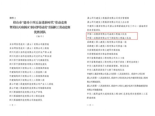 1月26日,四川省眉山市總工會發(fā)布關于眉山市“建功十四五奮進新時代”勞動競賽暨眉山天府新區(qū)“新區(qū)夢勞動美”首屆職工勞動競賽的表揚通報,對中國二冶集團、中國二冶梓州大道項目部在勞動競賽期間,積極響應眉山天府新區(qū)總工會的號召,認真組織開展施工生產任務,較好地完成施工生產總目標給予充分肯定,并給予表揚通報。