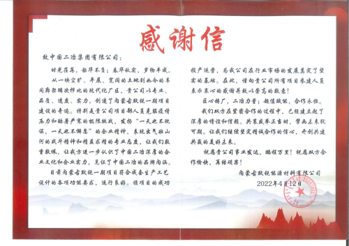 中國(guó)二冶連續(xù)收到兩封感謝信 ——盛贊中國(guó)二冶工程建設(shè)中的央企責(zé)任和擔(dān)當(dāng)