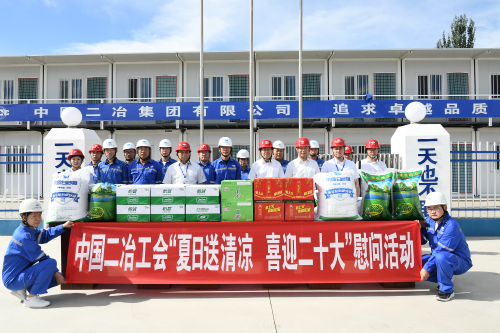 近期,驕陽似火,氣溫持續(xù)走高,一線項目也迎來了黃金施工期,公司各項目紛紛掀起大干熱潮。為保障職工身體健康,助力安全生產(chǎn),7月12-18日,公司黨委書記、董事長徐永鋒,黨委副書記、總經(jīng)理高文華,黨委副書記、工會主席白峰等領(lǐng)導班子成員,分別來到項目施工一線,開展“夏日送清涼 喜迎二十大”慰問活動,為高溫氣候下堅守崗位的一線人員送去清涼,并對員工的辛勤付出表示感謝,叮囑員工在做好本職工作時,要注意防暑降溫。