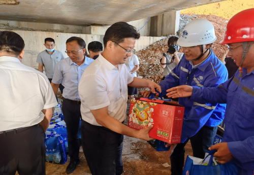 7月26日下午,永州市委副書記、市長陳愛林深入中國二冶濱江新城康養(yǎng)綜合體項(xiàng)目湘江東路建設(shè)工地開展“送清涼”活動,走訪慰問一線施工人員,為他們送去解暑物資,并致以親切問候。永州市人大常委會副主任、市總工會主席胡先榮,市政府秘書長齊愛社參加。