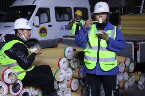 隔離點(diǎn)一線工作人員現(xiàn)場就地用餐