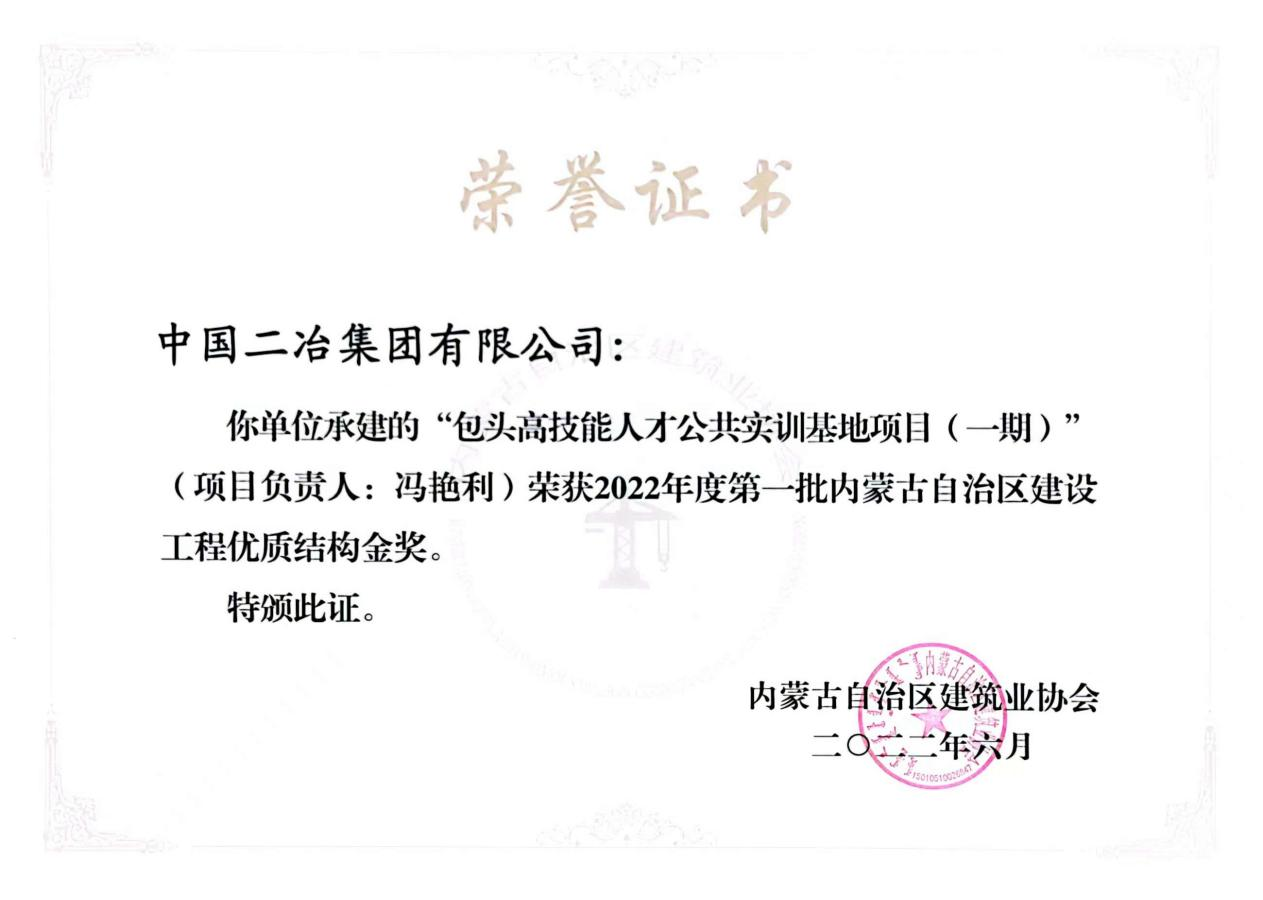 3月29日,中國二冶收到內(nèi)蒙古自治區(qū)建筑業(yè)協(xié)會榮譽證書,公司五個項目榮獲2022年度內(nèi)蒙古自治區(qū)建設工程優(yōu)質(zhì)結(jié)構(gòu)金獎、銀獎。實訓基地項目和大絲束碳纖維產(chǎn)業(yè)化項目一期工程分別獲得2022年度第一批和第二批內(nèi)蒙古自治區(qū)建設工程優(yōu)質(zhì)結(jié)構(gòu)金獎;水泊東岸項目、包頭市九原醫(yī)院項目、中冶德賢公館項目獲2022年度第二批內(nèi)蒙古自治區(qū)建設工程優(yōu)質(zhì)結(jié)構(gòu)銀獎。