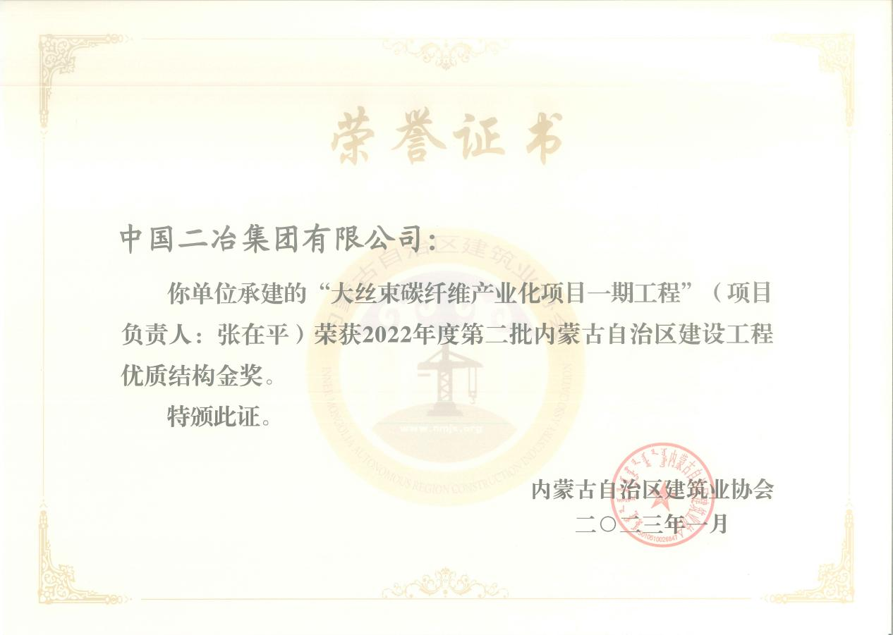 大絲束碳纖維產(chǎn)業(yè)化項目一期工程項目獲獎證書
