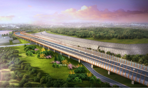 該項(xiàng)目建設(shè)地點(diǎn)位于湖南省衡陽市珠暉區(qū),項(xiàng)目西起蒸湘南路,東至終點(diǎn)G107國道,道路全長5.36公里。項(xiàng)目包括道路、橋涵、交通安全、排水、照明、景觀綠化、綜合管廊等專業(yè),其中綜合管廊3.66公里,采用預(yù)制疊合裝配整體式混凝土結(jié)構(gòu)技術(shù)建造,高架橋梁0.925公里。道路標(biāo)準(zhǔn)段道路設(shè)計(jì)紅線寬55米,道路設(shè)計(jì)等級為城市主干路,主路設(shè)計(jì)速度為60km/h,輔路設(shè)計(jì)速度30km/h,共計(jì)雙向八車道,道路全線為新建??偣て?20日歷天。