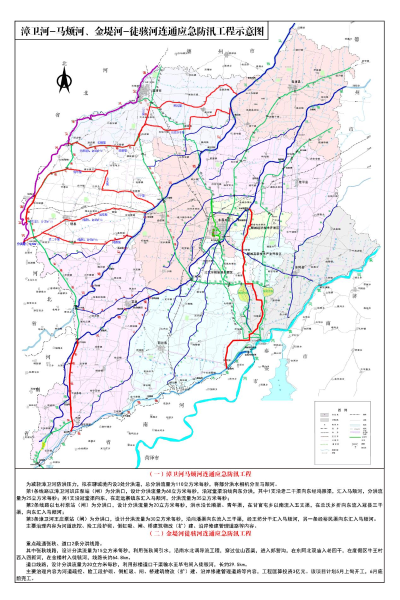 項目主要包含聊城市漳衛(wèi)河馬頰河引調(diào)水工程初步設(shè)計及應(yīng)急防汛部分施工,建設(shè)渠道清淤疏浚、岸坡修整及入馬頰河回水段筑堤,總清淤疏浚長232.69km,回水段筑堤長2.405km,擬定冠縣兩條、臨清市一條共計上中下三條調(diào)水線,通過汛前打通漳衛(wèi)河馬頰河分洪通道,以保證漳衛(wèi)河防洪安全。